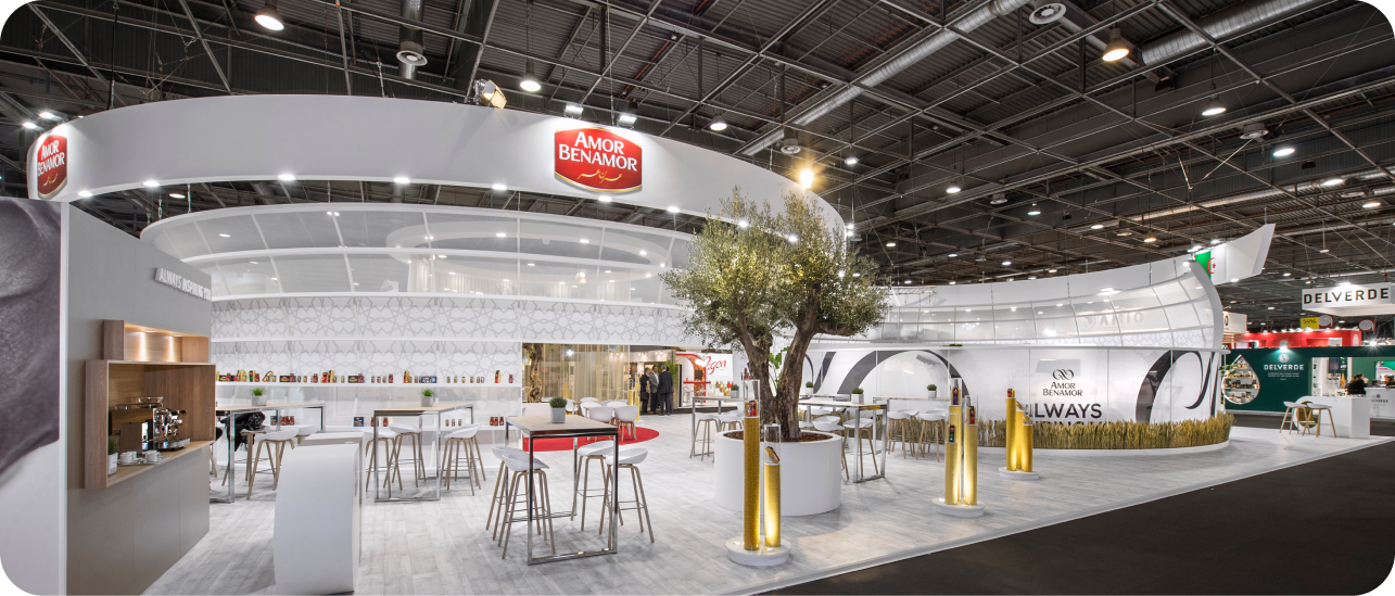 Depuis sa première participation au SIAL, le groupe Amor Benamor a confié à Cap Linea la création de ses stands, qui ont doublé de surface à chaque édition, commençant à 50 m2 pour atteindre 500 m².