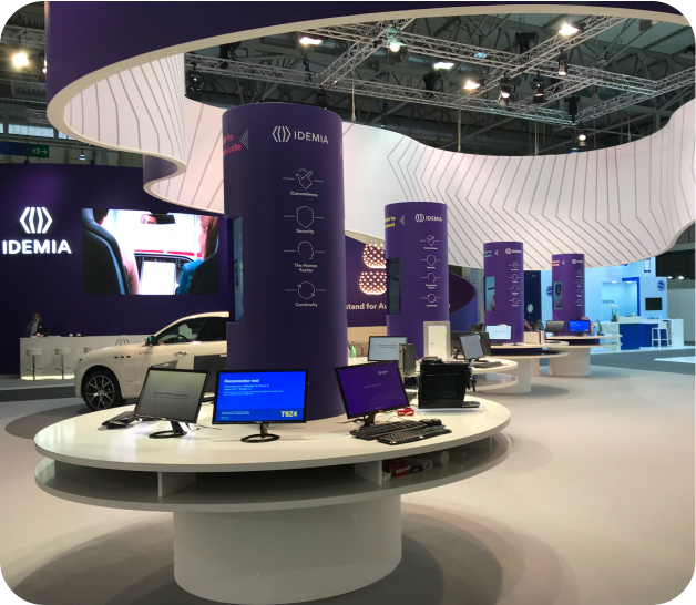 À partir d’un design créé par une agence externe en partenariat avec notre bureau d’études, nous avons assuré la réalisation technique du stand de ce créateur de solutions de cryptographie, en conformité avec les normes de l’organisateur (anglais) et du lieu (Parc de Barcelone). Cap Linea a géré les plans techniques, l’ensemble du suivi fabrication et montage, en particulier du mobilier sur mesure en matériaux composites. Un stand corporate et innovant, mettant en valeur l’expertise technologique du client.